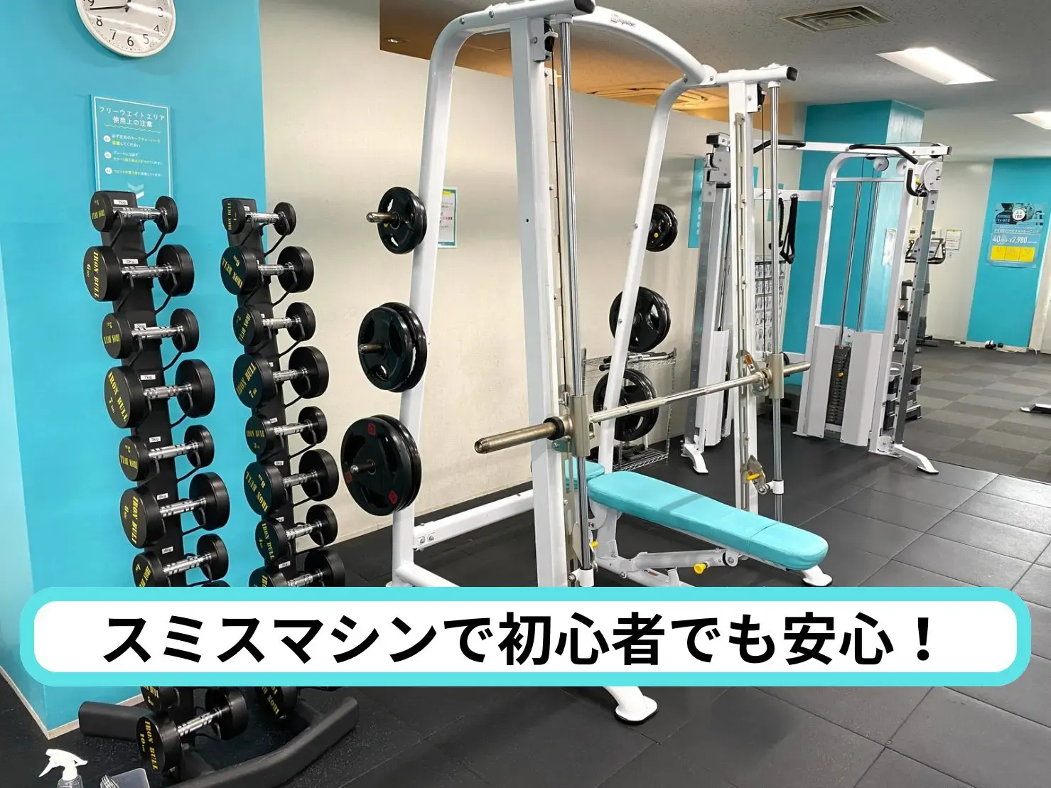 「スマートフィット100 蘇我店」は、千葉県蘇我エリアに位置し、JR東日本内房線・京葉線・外房線の蘇我駅から徒歩圏内のアクセス便利なジム施設です。 当施設は24時間営業で、忙しいライフスタイルに合わせて自由に運動できるのが魅力です。パーソナルトレーニングや多彩なプログラムを提供し、ダイエット、筋力アップ、美脚・美尻作り、くびれや姿勢改善など、多様な目的に対応します。特に、お腹や背中、脚、二の腕など、気になる部位を集中的に鍛えるメニューも充実しています。 設備面では、ストレッチスペースや水素水、専用ロッカー、ウォーターサーバー、シャワー、更衣室、Wi-Fiを完備しており、快適なトレーニング環境を提供。安全面も徹底しており、監視カメラやデジタルキー/カードキーによるセキュリティも万全です。さらに、無料の駐車場・駐輪場も利用でき、車や自転車でも通えます。 トレーニング機器はクロストレーナーやアップライトバイク、ダンベル、パワーラック、スミスマシンなど充実しており、自分に合ったトレーニングを効果的に行えます。健康維持や運動不足解消、ストレス発散、産後ダイエット、ブライダル準備といったさまざまな目的に応じてサポートします。初心者から経験者まで幅広く対応できる豊富な設備とプログラムで、皆様の理想の体づくりを丁寧にサポートします。